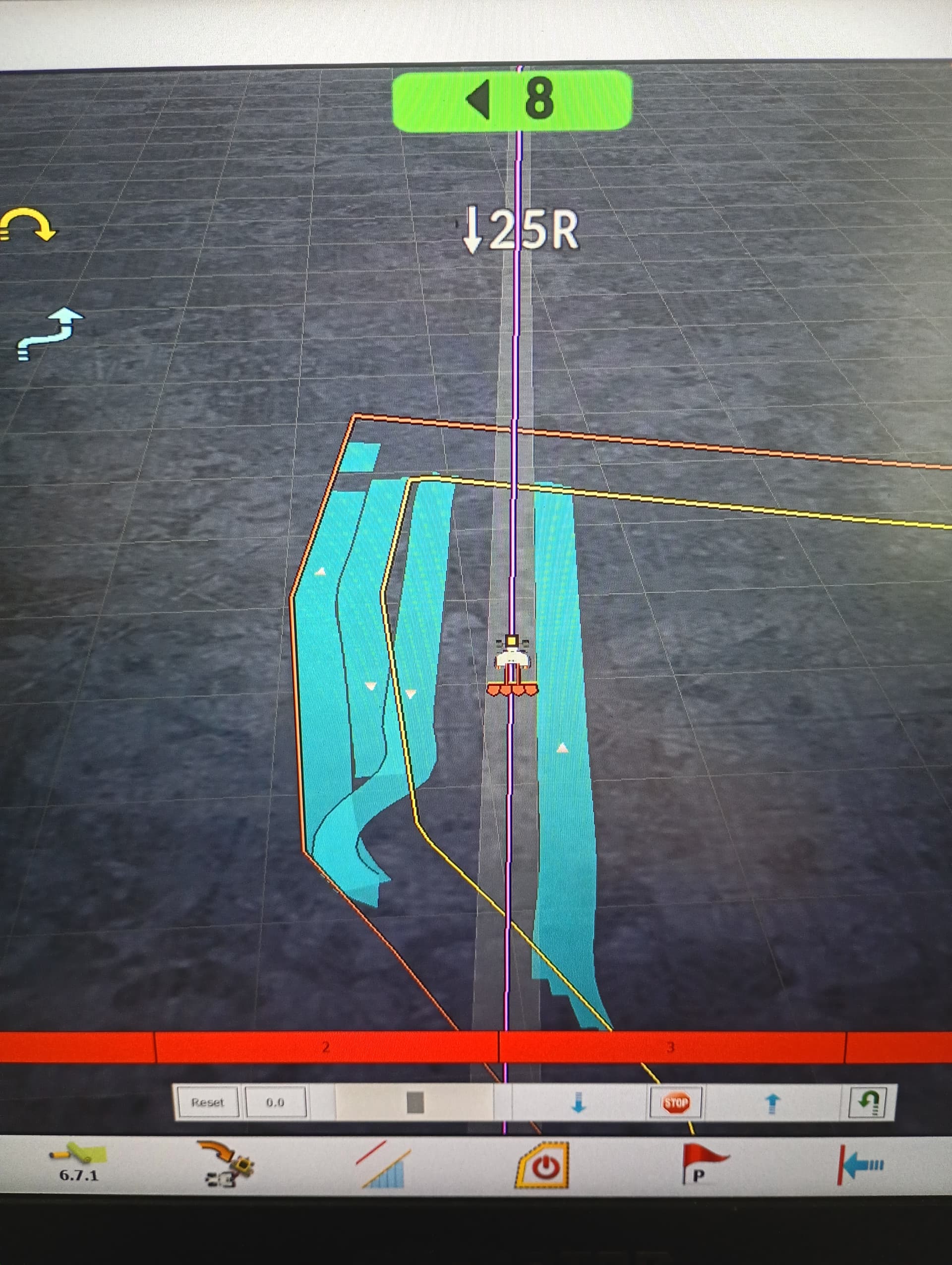 I think you can achieve the effect you want by using the headland builder, creating straight AB lines or AB curves, and switching between them. I’m adding two more photos from the simulation.
