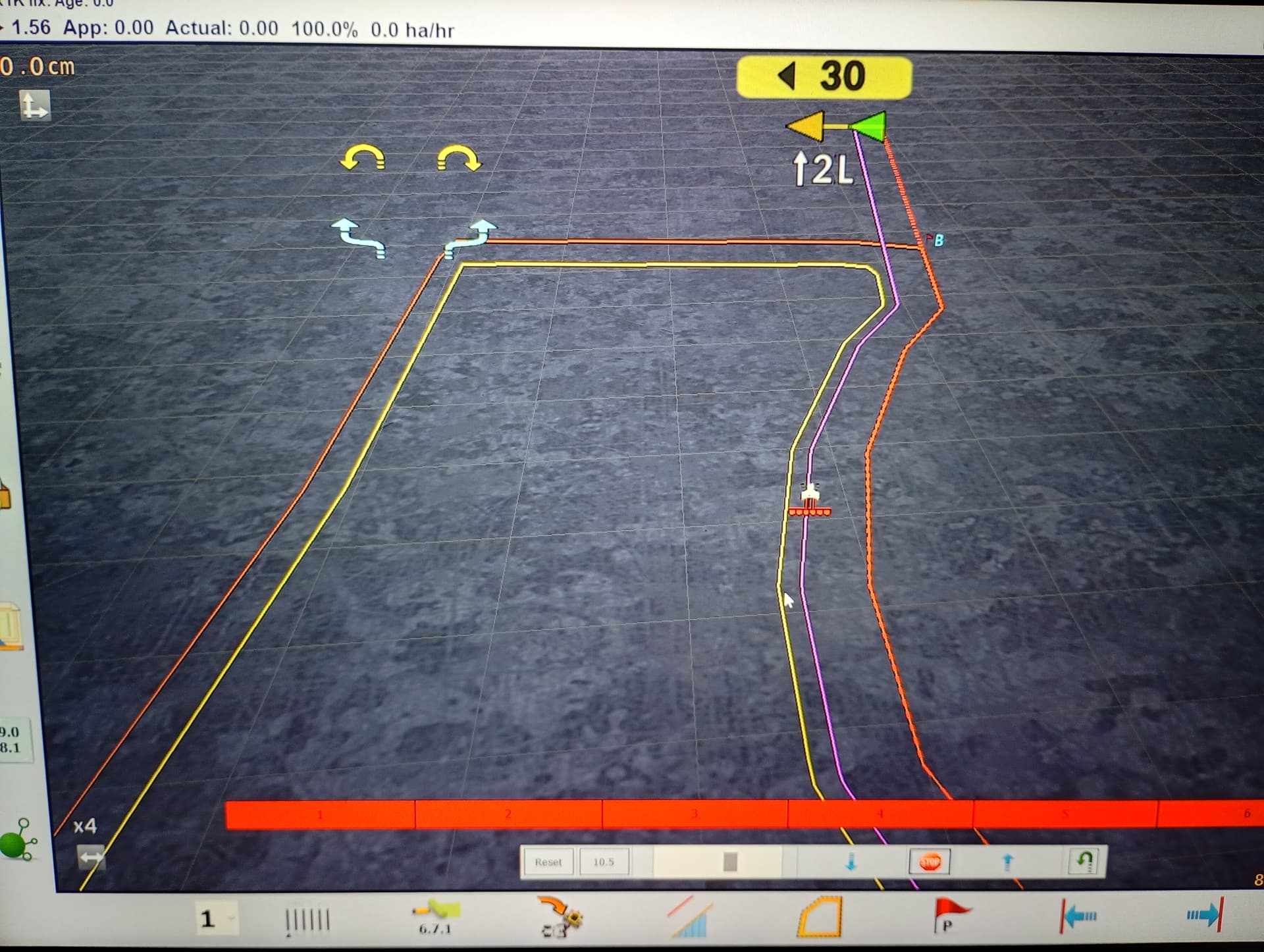 At the moment I drive the first pass without seeding to get a feeling how much I have to shift the line when the implement is moving out of the field border.