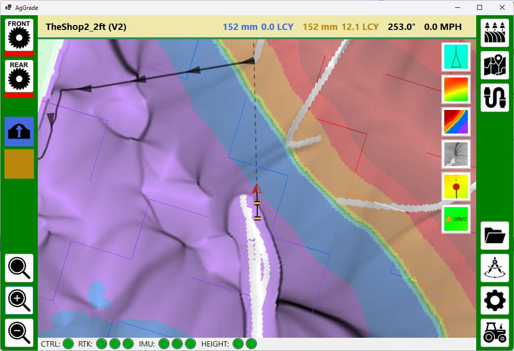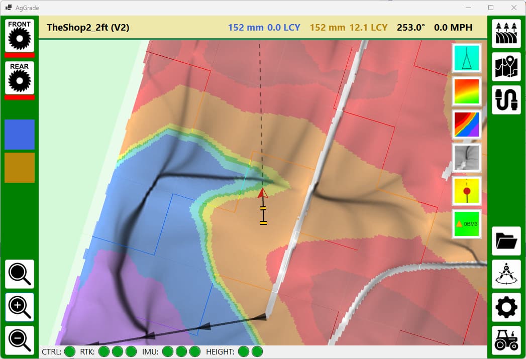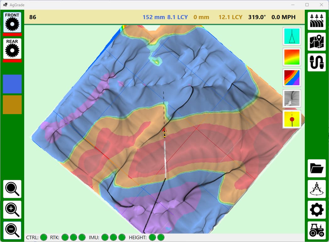 - I can generate statistics as I go along, such as percentage of field completed, estimated remaining time, cubic yards moved per day, etc.