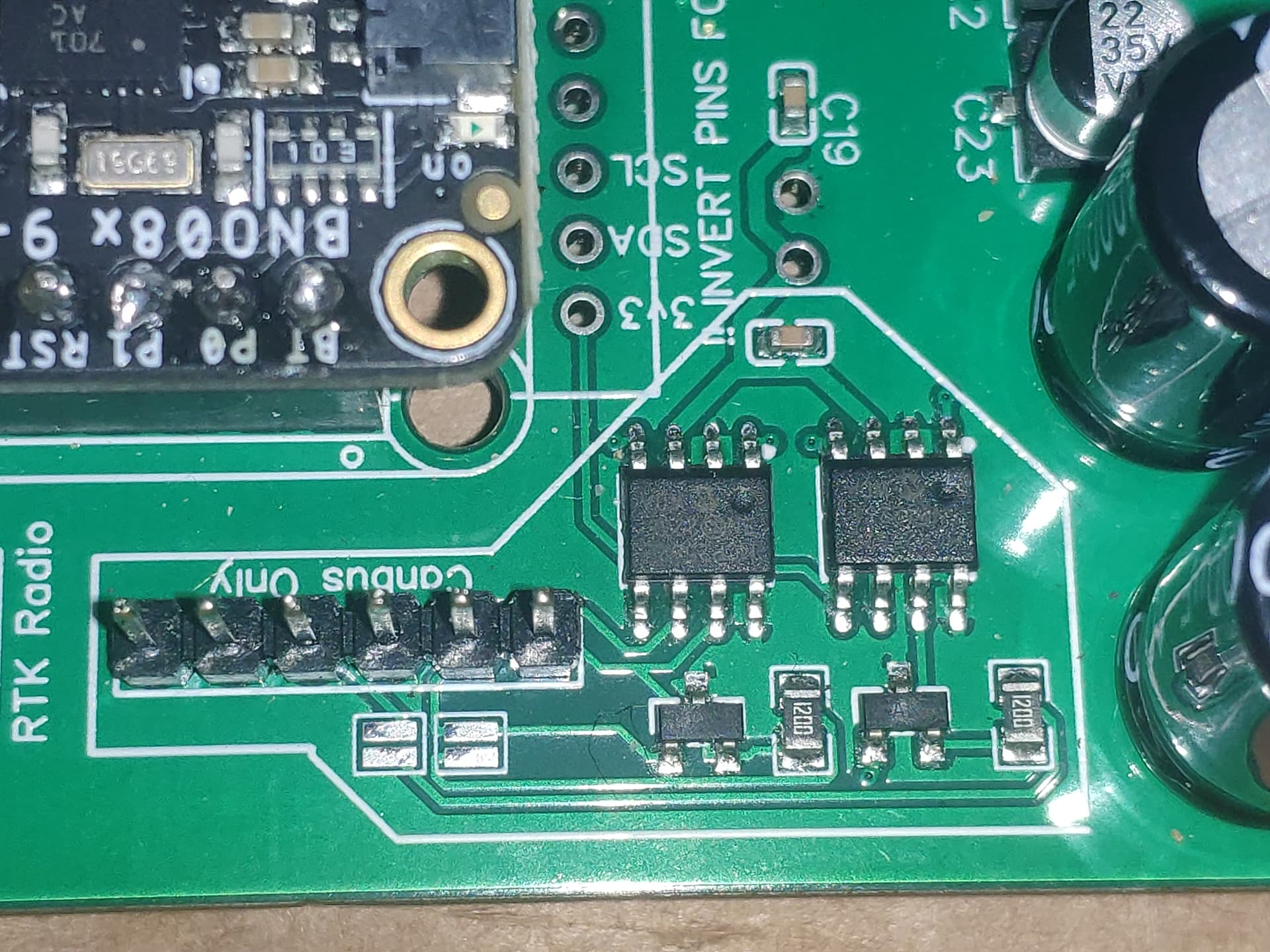 I have a 2.5" PCB that receives power between pins 22 and 23 of the Ampseal. I calibrated the WAS and the valve with the PCB connected to the CAN line, but when I start the tractor, the LED doesn’t light up and nothing works. It seems like it’s not getting power. I detect 0.46 V on both voltage regulators when there should be 5 V. I’ve tested the Teensy on another board and it works, as do the F9P and the BN085. Does anyone know why there’s no power coming in from the socket? What have I burned?
