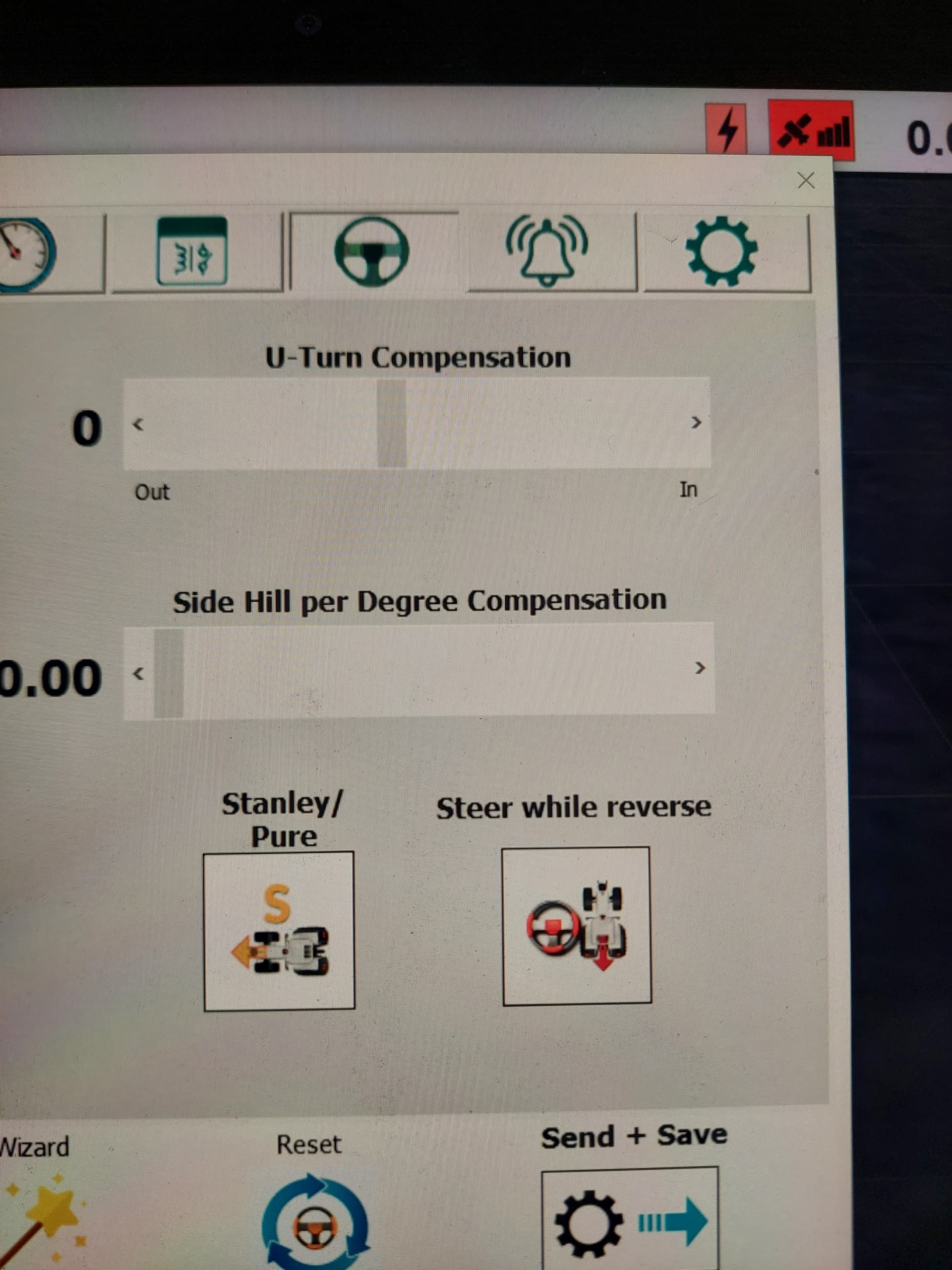 There is a setting in the steering settings pages that allows autosteer in reverse. Expand the steer menu then hit the steering wheel icon on the top row.