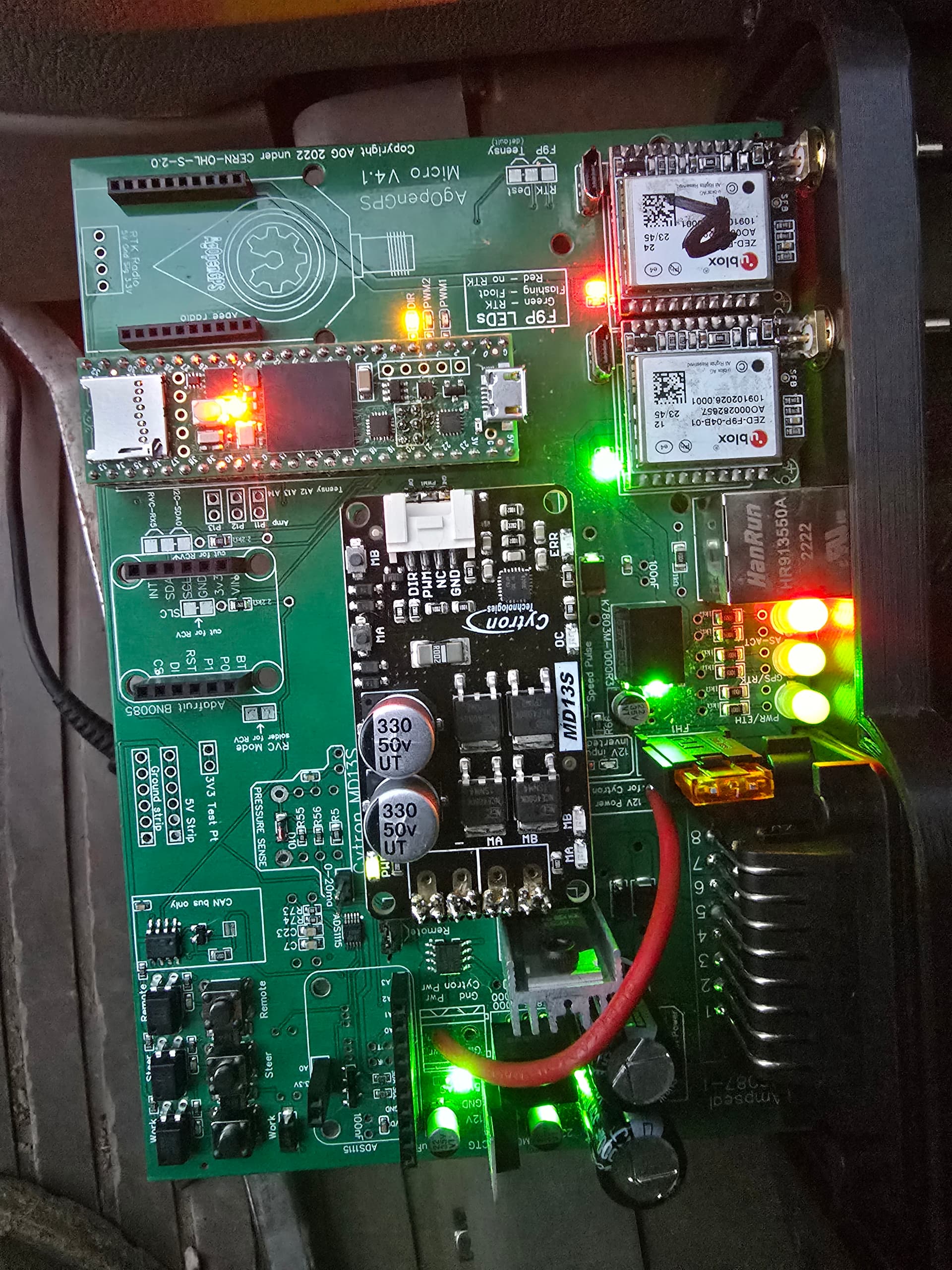 I have Ntrip all set up and working, and it will steer automatically as it should, just the one led on the right hand board is red and the left hand one is green. In AOG in the top corner it says GPS single even though it is set to dual antenna, and the little satellite at the top stays red. I Will check on my other system too see if the LEDs are the same. When i unplug the dual left antenna i lose all rtk signal, but when i unplug the right hand one it carries on as if i have changed nothing