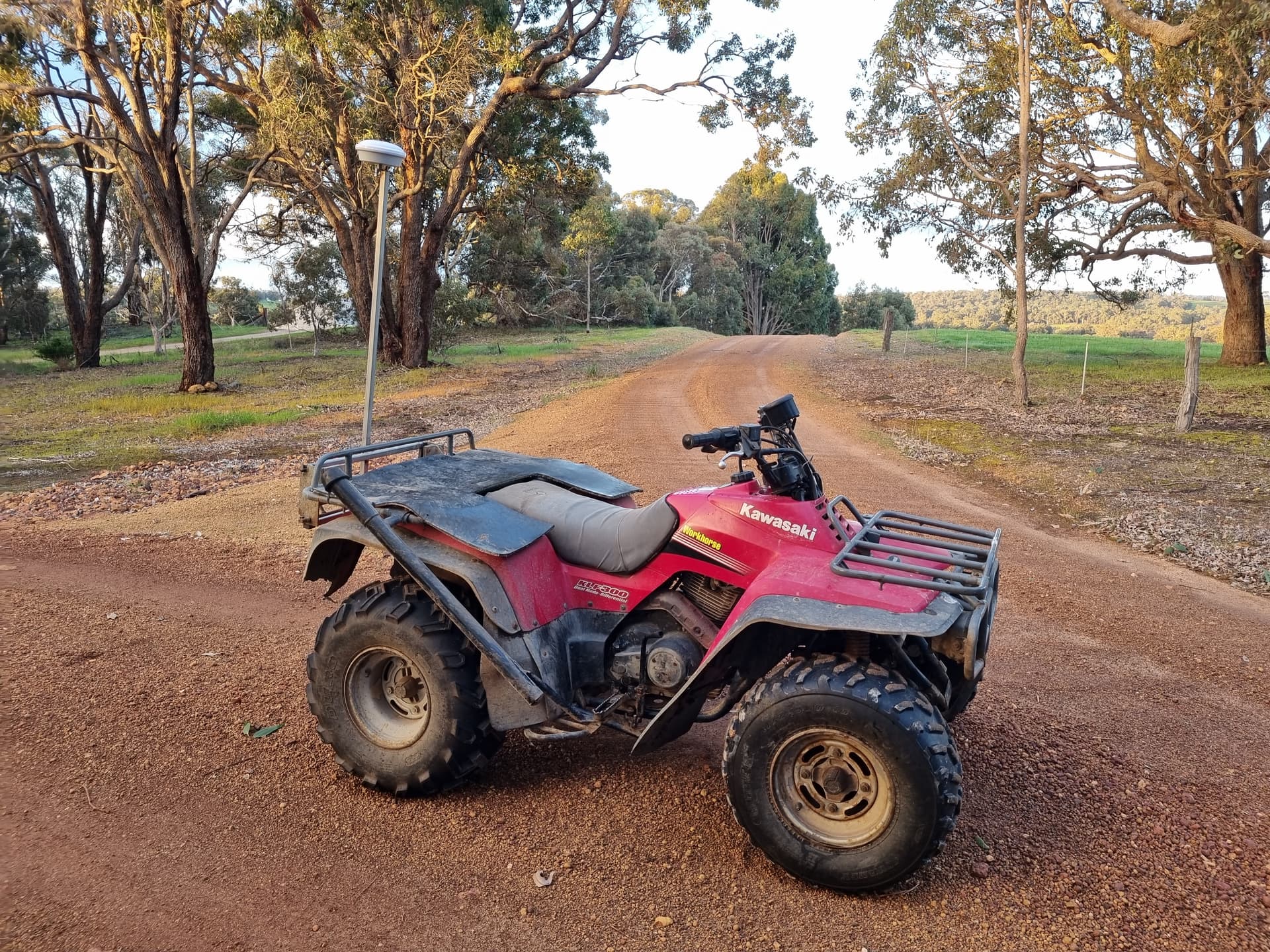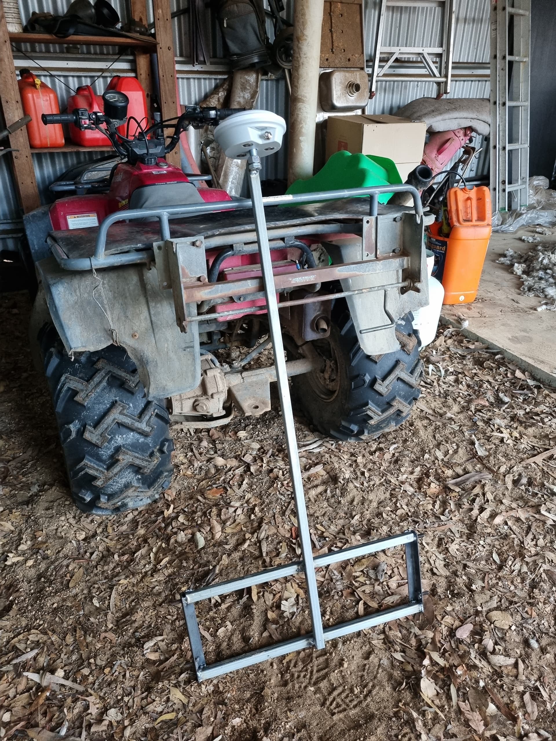 The fellow Australian/NZ farmers might recognise the C-Dax quick attach rack fitted to my trusty Kawasaki steed. I made a frame to fit the quick attach rack, with a 1100mm mast and whatever size imperial bolt fits my ali-express AG25 antenna.