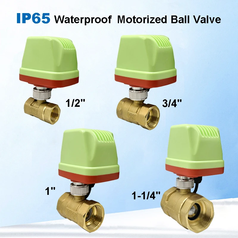 I just found this on AliExpress: C$32.93 | 1/2’’ 3/4’’ 1’’ 1-1/4’’ 2 Way Brass Electric Ball Valve 220V 24V 12V IP65 Waterproof Motorized Ball Valve Big Torque Metal Motor