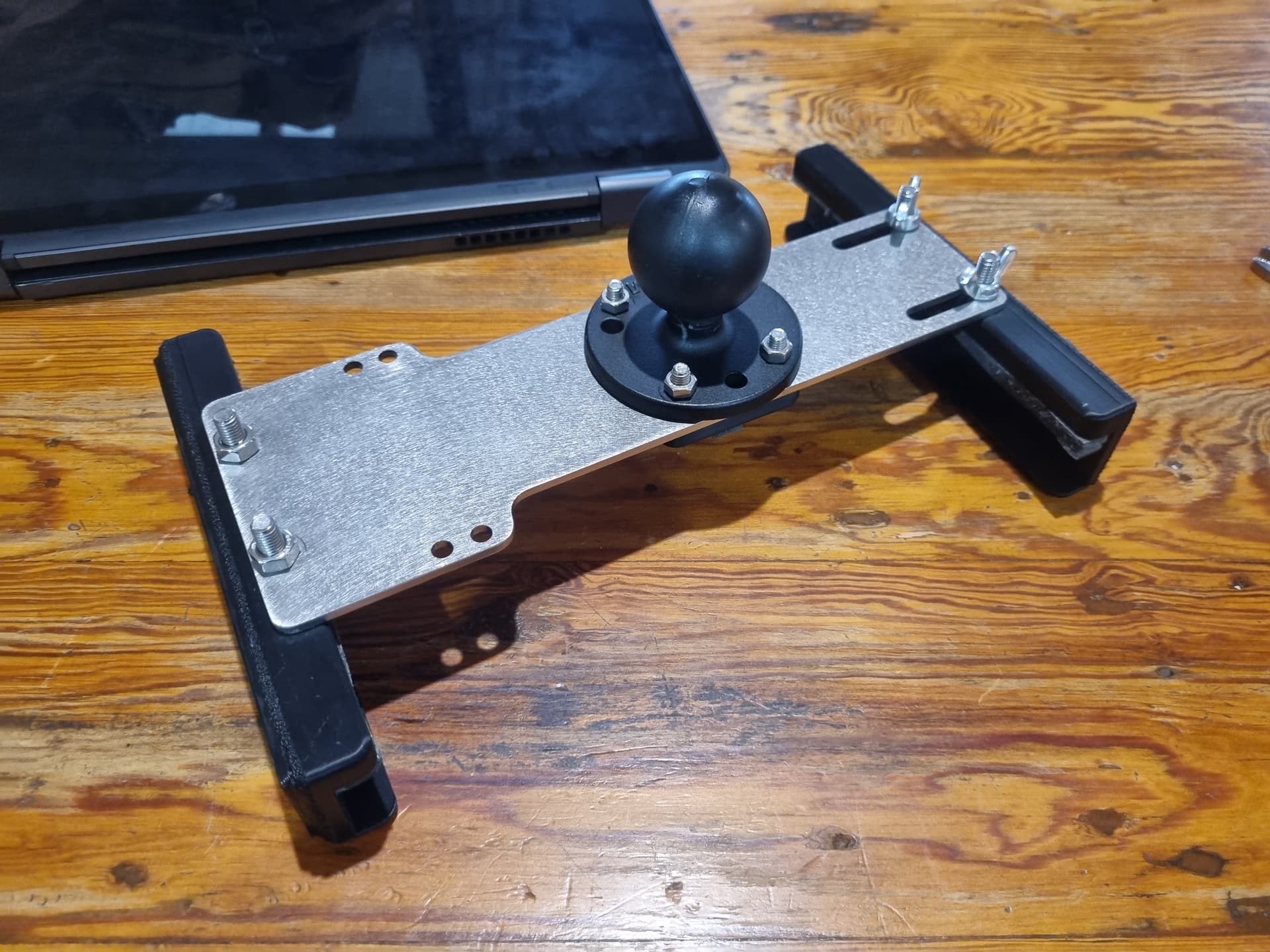 I spent some time modelling a 3d printable laptop clamp that fits this model Dell and presumably many other tablets. This clamp uses some M5, M6 bolts, nuts and wing nuts, as well as some adhesive backed foam tape and a RAM mount ball for mounting purposes.
